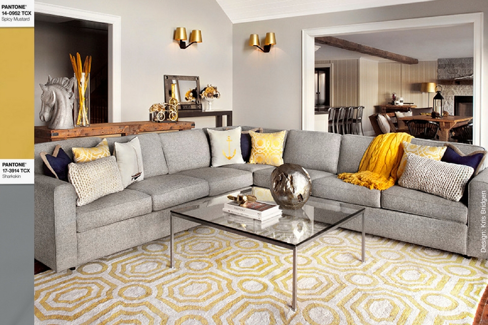 We've fallen in love with Pantone's Fall 2016 Palette, and this stunning interior designed by Kris Brigden, perfectly embodies the pairing of two of the color authority's chosen hues - Spicy Mustard and Sharkskin.