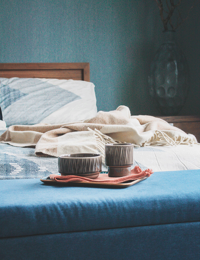 Well lots of the blue and teal tones are going to be staples of 2021 as demonstrated by Benjamin Moore's announcement of Aegean Teal. I think in addition, there are so many natural tones in the house that echo the trend of reconnecting with the outdoors. We have a lot of light natural wood, earthy textures in wallpaper, a lot of tone on tone and also natural materials like wicker and thicker weaves. All of these elements combined create a space that is both restorative and truly brings the outdoors in.